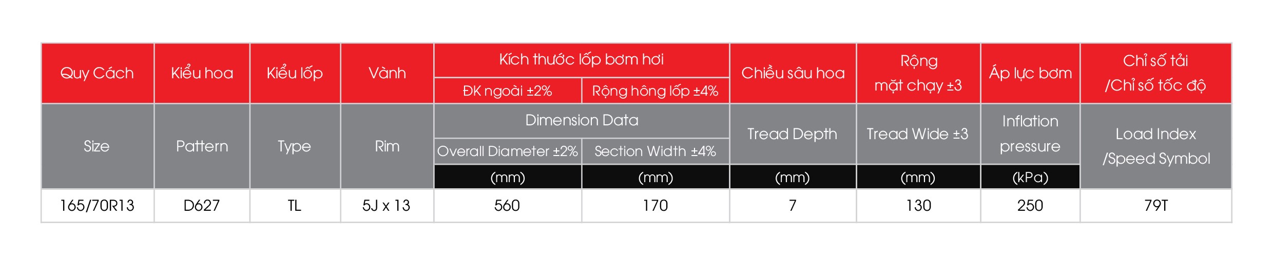 QUY CÁCH 165/70R13